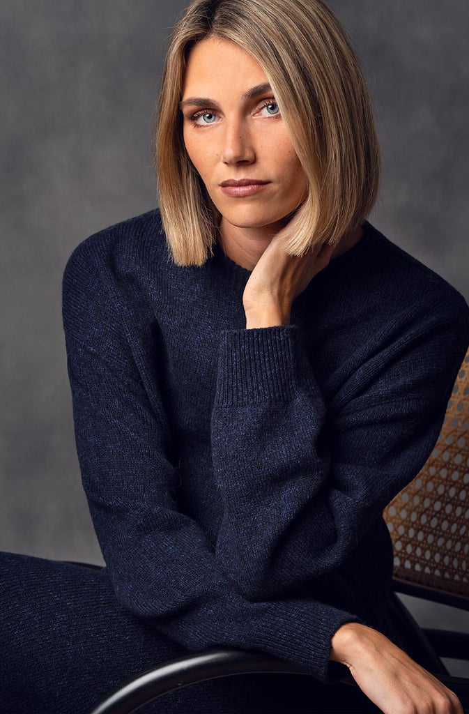Strickpullover in Navy – Schlichte Eleganz mit luxuriösem Tragegefühl: Zeitlos, weich und wunderbar vielseitig – dieser Pullover überzeugt mit seinem minimalistischen Design. Der gerade Schnitt und die feine Strickstruktur verleihen ihm eine moderne Silhouette. Dank seiner schlichten Form lässt sich der Pullover mühelos kombinieren.