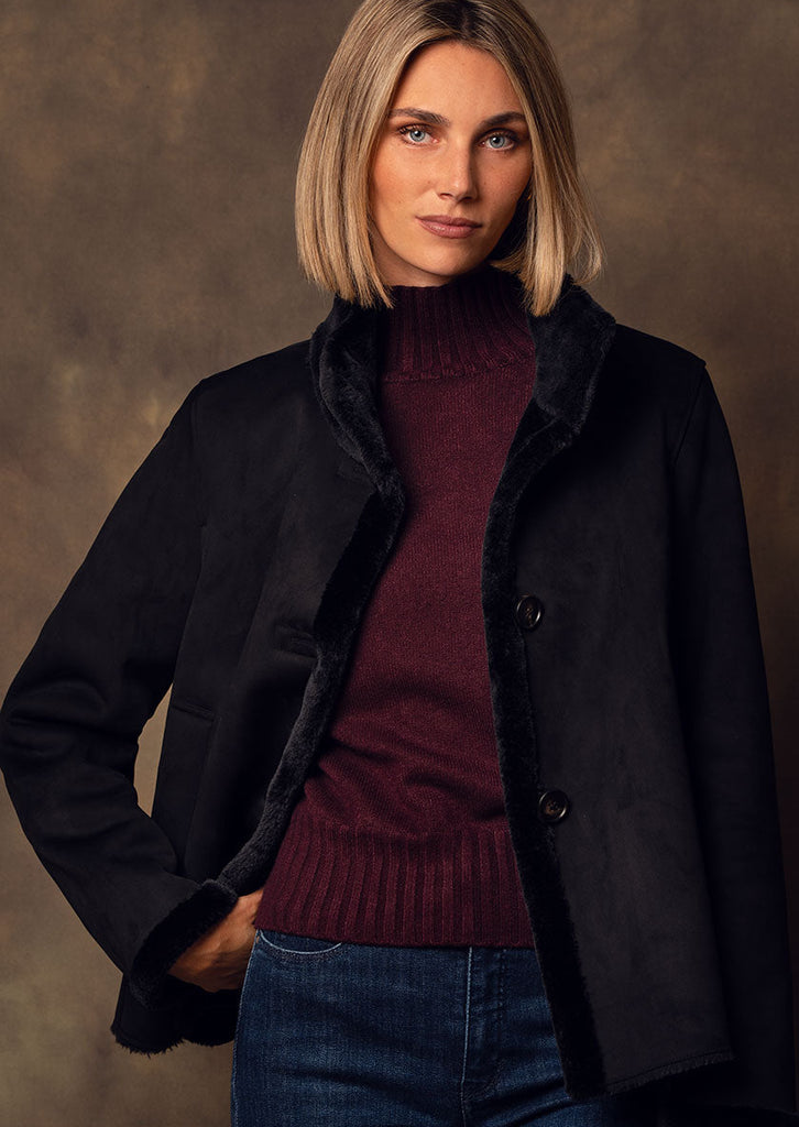 Diese Jacke von Fuchs & Schmitt ist der perfekte Mix aus lässiger Eleganz und cozy Komfort. Aussen zeigt sie sich in einem cleanen Finish, innen überrascht sie mit superweichem, flauschigem Futter – ideal für kühle Tage.