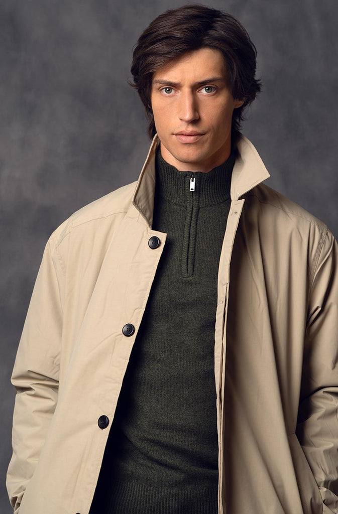 Dieser Mantel ist ein Statement für zeitlosen Stil und smarte Funktionalität. In einem klaren Beigeton gehalten, überzeugt er durch seine reduzierte Ästhetik und die perfekte Balance zwischen Eleganz und Lässigkeit.