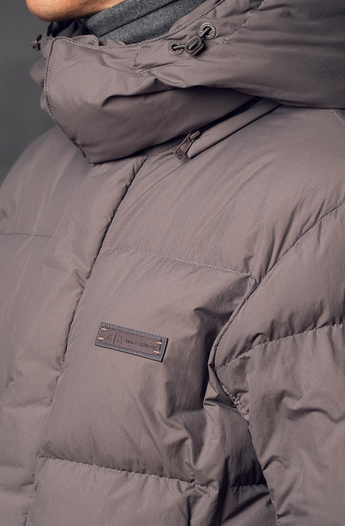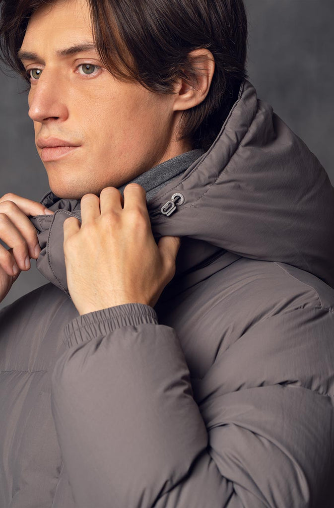 Die grosszügige Füllung speichert zuverlässig Wärme, ohne dabei aufzutragen. Eine Kapuze und der hochgeschnittene Kragen schützen effektiv vor Wind und Kälte, während die klare Linienführung für eine maskuline, aufgeräumte Silhouette sorgt. Zwei seitliche Taschen bieten praktischen Stauraum, und der verdeckte Reissverschluss mit Druckknopfleiste rundet das Design dezent ab.