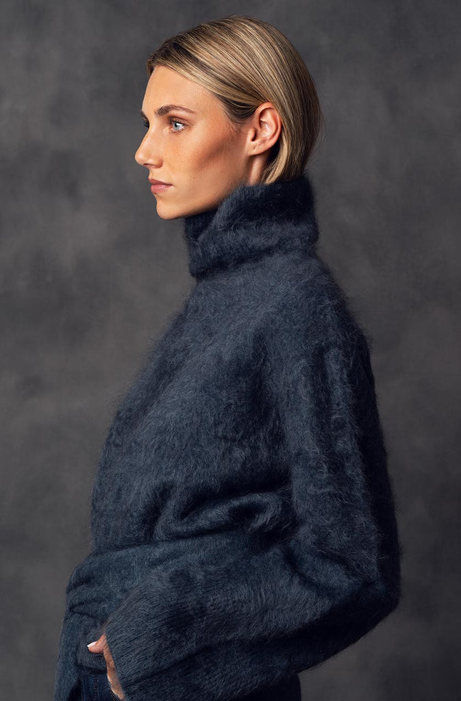Weich, warm und wunderbar elegant – dieser Pullover von Lisa Yang ist ein echtes Highlight für die kühle Jahreszeit. Das luxuriöse Garn verleiht ihm eine aussergewöhnlich flauschige Oberfläche und einen Hauch von Leichtigkeit, während der feine Glanz für einen edlen Look sorgt. Der hohe Rollkragen umrahmt das Gesicht auf sanfte Weise und sorgt für ein Gefühl von Geborgenheit. Durch die weiten Ärmel und den lockeren Schnitt entsteht eine moderne, leicht oversize Silhouette.