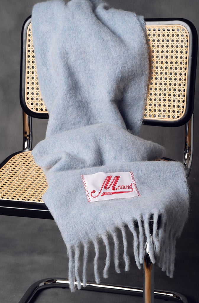 Luxuriös weich und stilvoll zugleich –gefertigt aus einer hochwertigen Wollmischung, überzeugt dieser Schal von Marni mit seiner flauschigen, voluminösen Textur und angenehmen Wärme. Die feinen Fransen an den Enden verleihen dem Accessoire eine lässige Note, während das markante Marni-Logo-Patch in kontrastierendem Rot einen unverwechselbaren Design-Akzent setzt.