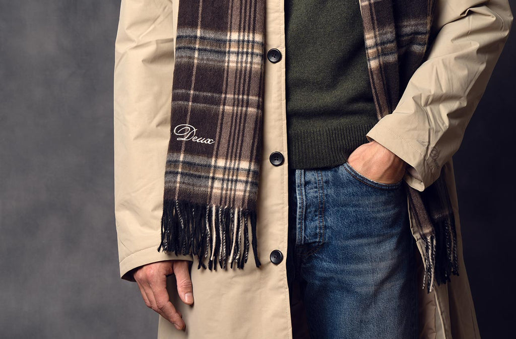 Ein Accessoire, das sofort Präsenz zeigt: Der karierte Schal in warmen Brauntönen kombiniert klassische Muster mit moderner Lässigkeit. Die sanft abgestimmten Farben verleihen Tiefe und machen ihn zum perfekten Begleiter für neutrale Outfits oder monochrome Looks.