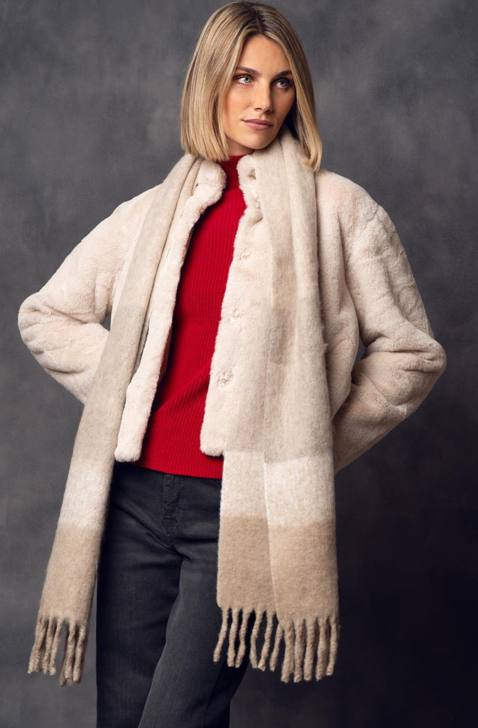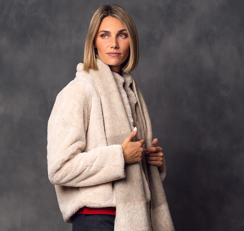 Diese Teddy Jacke steht für modernen Luxus in seiner weichsten Form. Die samtige Oberfläche verleiht ihr eine elegante Struktur, während der entspannte Schnitt eine mühelose Silhouette schafft. In einem sanften Beigeton gehalten, lässt sie sich vielseitig kombinieren. Der kuschelig-weiche Griff sorgt für ein angenehmes Tragegefühl, das Wärme und Stil perfekt vereint. Eine Jacke, die mit jedem Outfit harmoniert und jedes Winterstyling aufwertet – elegant, feminin und zeitlos schön.