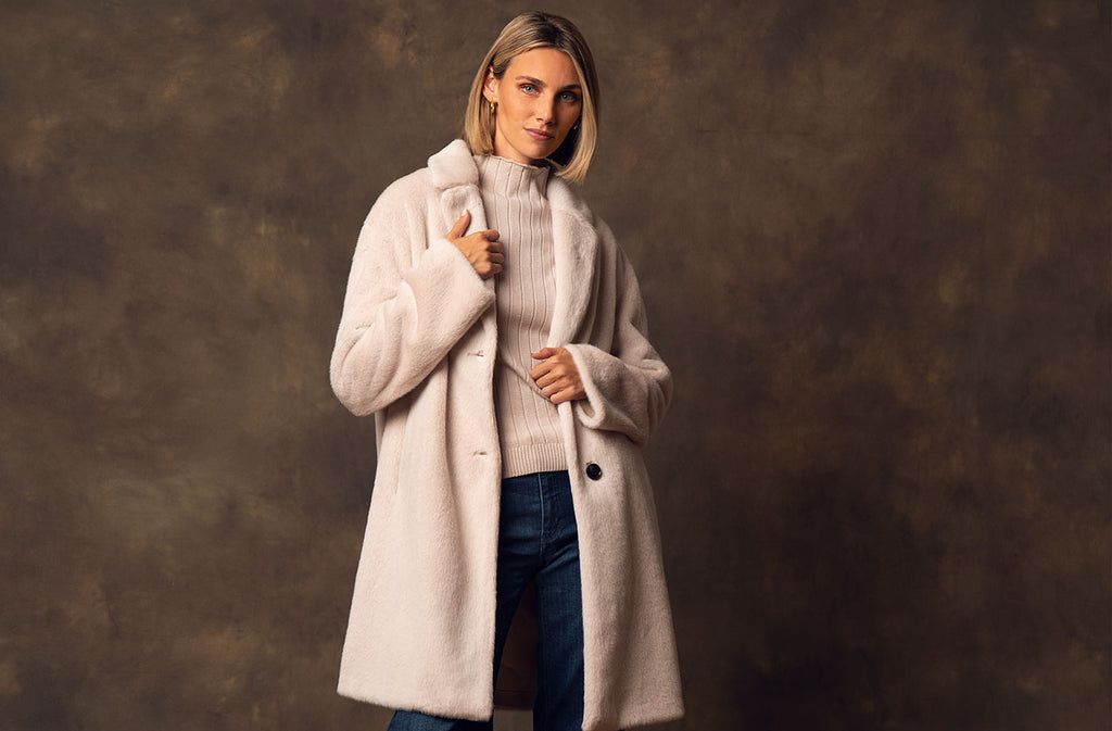 Der Mantel schafft eine elegante, gestreckte Silhouette. Durch seine leicht oversized geschnittene Form wirkt er modern, ohne an Struktur zu verlieren. Das Teddy-Material fühlt sich weich und wärmend an – ideal für kühle Tage, an denen man sich stilvoll einhüllen möchte.